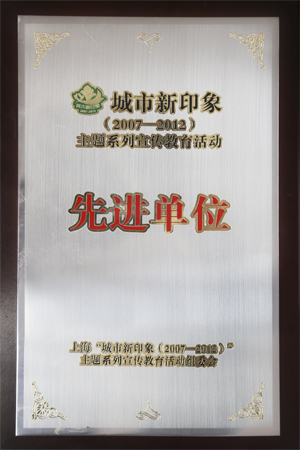 “城市新印象(2007-2012)”主題系列宣傳教育活動先進單位獎牌。
