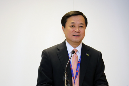 中國商飛公司總經(jīng)理賀東風(fēng)在簽約儀式上致辭。