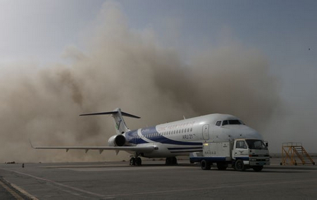 中國經(jīng)濟網(wǎng)訊 2013年3月31日,ARJ21-700飛機102架機進行了轉(zhuǎn)場后的首次檢飛。102架機于上午9時21分在嘉峪關(guān)機場起飛,經(jīng)過1小時46分鐘的飛行,于11時07分降落,順利完成了檢飛任務(wù)。局方試飛員對飛機性能和狀態(tài)給予了肯定。