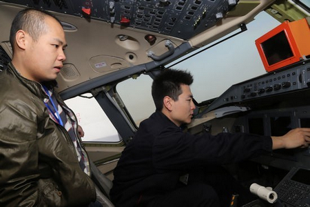 局方試飛員與試飛工程師進行檢飛前檢查。