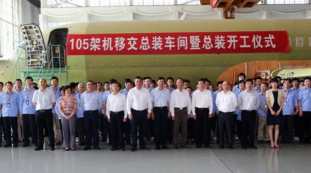 中國經濟網訊 2013年5月14日,ARJ21新支線飛機105架機正式移交總裝車間開工總裝,標志著預投產工作取得了階段性重要進展。