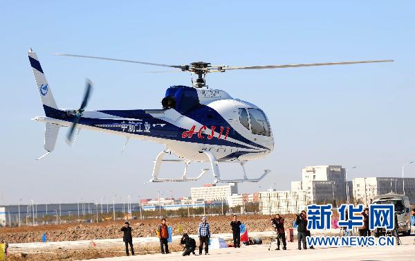 由中國航空工業(yè)集團(tuán)公司自主研制的國產(chǎn)輕型多用途直升機AC311在中航直升機天津分公司完成總裝下線,于11月8日在天津成功首飛。AC311直升機的首飛成功、由天津總裝的首架AC301直升機實現(xiàn)客戶接機,標(biāo)志著中國AC系列民用直升機產(chǎn)品開發(fā)邁上新臺階。據(jù)介紹,AC311直升機是性能優(yōu)越的2噸級輕型多用途直升機,可廣泛應(yīng)用于飛行訓(xùn)練、人員運輸、公安執(zhí)法、通信指揮、航拍攝影、醫(yī)療救護(hù)、電力巡線、護(hù)林防火、飛播滅蟲等任務(wù)。與AC311一同飛行的直升機是同一系列的輕型直升機AC301。AC301是天津基地完成總裝的首架直升機,將由中國飛龍通用航空公司接收并投入運營。新華社記者劉海峰攝