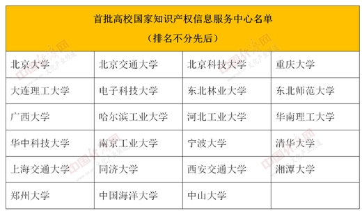 據(jù)中國(guó)經(jīng)濟(jì)網(wǎng)文化產(chǎn)業(yè)頻道記者了解,2019年3月7日,經(jīng)國(guó)家知識(shí)產(chǎn)權(quán)局辦公室聯(lián)合國(guó)家教育部辦公廳公布,北京大學(xué)等23家高校已入選“首批高校國(guó)家知識(shí)產(chǎn)權(quán)信息服務(wù)中心”名單。隨著第二批37家高校的入選,“高校國(guó)家知識(shí)產(chǎn)權(quán)信息服務(wù)中心”總體數(shù)量增至60家。