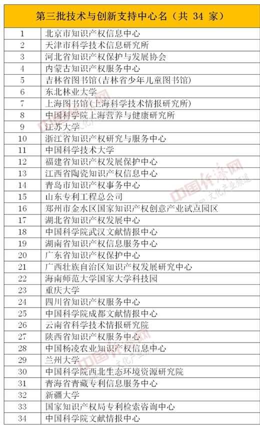 以下為《第三批技術(shù)與創(chuàng)新支持中心名單》: