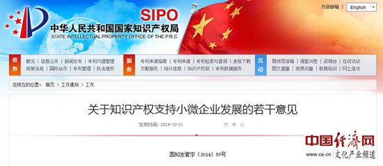中國(guó)經(jīng)濟(jì)網(wǎng)北京10月14日訊 中國(guó)經(jīng)濟(jì)網(wǎng)文化產(chǎn)業(yè)頻道記者從國(guó)家知識(shí)產(chǎn)權(quán)局網(wǎng)站獲悉,國(guó)家知識(shí)產(chǎn)權(quán)局近日印發(fā)了《關(guān)于知識(shí)產(chǎn)權(quán)支持小微企業(yè)發(fā)展的若干意見(jiàn)》(以下簡(jiǎn)稱《意見(jiàn)》)。據(jù)中國(guó)經(jīng)濟(jì)網(wǎng)文化產(chǎn)業(yè)頻道記者了解,該《意見(jiàn)》從扶持小微企業(yè)創(chuàng)新發(fā)展、完善小微企業(yè)知識(shí)產(chǎn)權(quán)服務(wù)、提高小微企業(yè)知識(shí)產(chǎn)權(quán)運(yùn)用能力、優(yōu)化小微企業(yè)知識(shí)產(chǎn)權(quán)發(fā)展環(huán)境4個(gè)方面,提出了支持小微企業(yè)創(chuàng)新成果在國(guó)內(nèi)外及時(shí)獲權(quán)、完善小微企業(yè)專利資助政策、扶持知識(shí)產(chǎn)權(quán)服務(wù)業(yè)小微企業(yè)等15條具體措施。