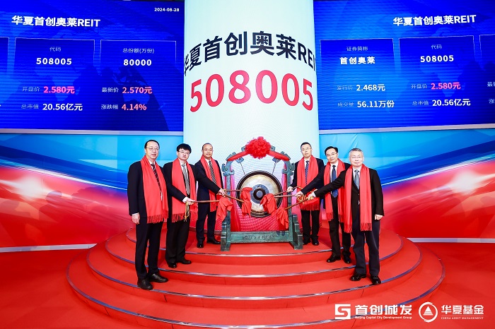 8月28日,首單以奧特萊斯作為底層資產(chǎn)的消費(fèi)REITs——華夏首創(chuàng)奧萊REIT(基金代碼:508005)正式在上交所上市。北京市國有資產(chǎn)監(jiān)督管理委員會(huì)、山東省發(fā)展改革委、湖北省發(fā)展改革委、山東省濟(jì)南市歷城區(qū)政府等有關(guān)領(lǐng)導(dǎo),北京首都創(chuàng)業(yè)集團(tuán)有限公司黨委書記、董事長劉永政,中信證券股份有限公司執(zhí)行委員、全球投資銀行管理委員會(huì)主任馬堯,華夏基金管理有限公司總經(jīng)理李一梅及托管銀行、合作機(jī)構(gòu)、投資者代表出席基金上市儀式。