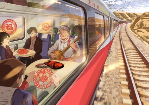 從陜西隴縣剪紙傳承人在6072次慢火車(chē)上妙手裁春,到“花木蘭”扮相的社火演員在開(kāi)往延安的高鐵上踏鼓游演,再到景德鎮(zhèn)非遺瓷板畫(huà)在G336 次列車(chē)上一一呈現(xiàn),今年春運(yùn),鐵路部門(mén)以“非遺+春運(yùn)”的創(chuàng)新融合,讓一項(xiàng)項(xiàng)承載著民族記憶與情感的非物質(zhì)文化遺產(chǎn),登上飛馳的鋼鐵巨龍,為流動(dòng)中國(guó)的時(shí)代畫(huà)卷,添上了濃墨重彩的一筆。