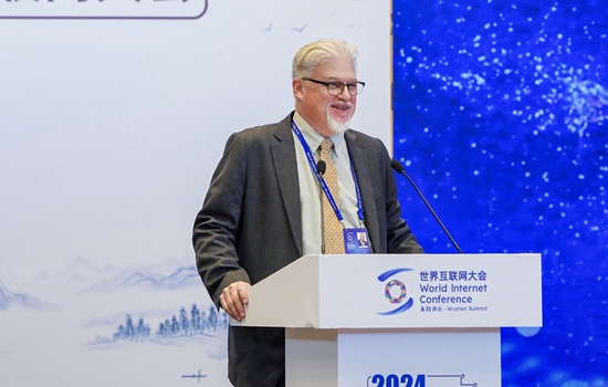 圖為美國信息產(chǎn)業(yè)機(jī)構(gòu)北京辦事處總裁繆萬德在“互聯(lián)網(wǎng)企業(yè)家論壇”上發(fā)言。(大會(huì)供圖)