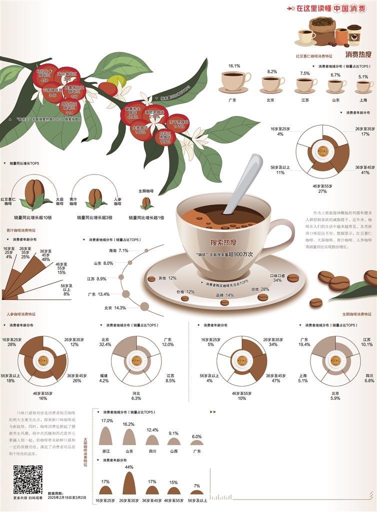 工作時(shí)沖一杯美式提神、午飯后來(lái)一杯拿鐵解膩、周末約好友“打卡”網(wǎng)紅咖啡店……近年來(lái),我國(guó)咖啡消費(fèi)穩(wěn)步提升,市場(chǎng)空間加速擴(kuò)容,咖啡正融入消費(fèi)者的日常生活。