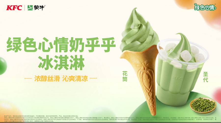隨變聯(lián)合肯德基打造九珍果汁脆皮冰淇淋,粉巧脆皮搭配九珍果汁軟芯,清甜微酸,一口入夏。作為二十年的經(jīng)典品牌,綠色心情與肯德基攜手聯(lián)名“綠色心情奶乎乎冰淇淋”,已在全國(guó)萬(wàn)余家線下肯德基門(mén)店上市,綠豆風(fēng)味冰淇淋奶香濃郁,絲滑沁爽,為夏日帶來(lái)一抹特別的綠色清涼。