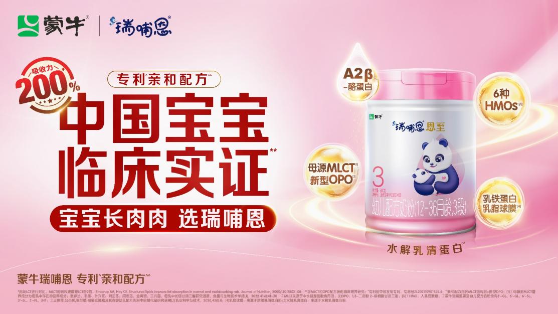 研發(fā)創(chuàng)新是模式重塑的關(guān)鍵一環(huán)。瑞哺恩作為蒙牛旗下高端嬰幼兒奶粉品牌,攜手頂尖大學(xué)研究機(jī)構(gòu)共同發(fā)布全球首個專利親和配方實證成果,經(jīng)過中國寶寶臨床喂養(yǎng)研究表明,瑞哺恩獨創(chuàng)的專利親和配方(MLCT+新型OPO)展現(xiàn)出了卓越的喂養(yǎng)成效,有效提升嬰配粉產(chǎn)品實力并引領(lǐng)行業(yè)高質(zhì)量發(fā)展。