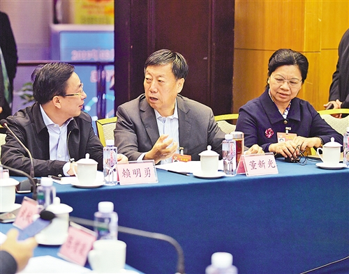 左圖 3月10日,全國(guó)政協(xié)民建界別在駐地舉行小組會(huì)議。會(huì)前,全國(guó)政協(xié)委員蒙曉靈、董新光、賴明勇(從右至左)就“如何探索生態(tài)優(yōu)先、綠色發(fā)展為導(dǎo)向的新路子”展開(kāi)交流。 本報(bào)記者 高興貴攝