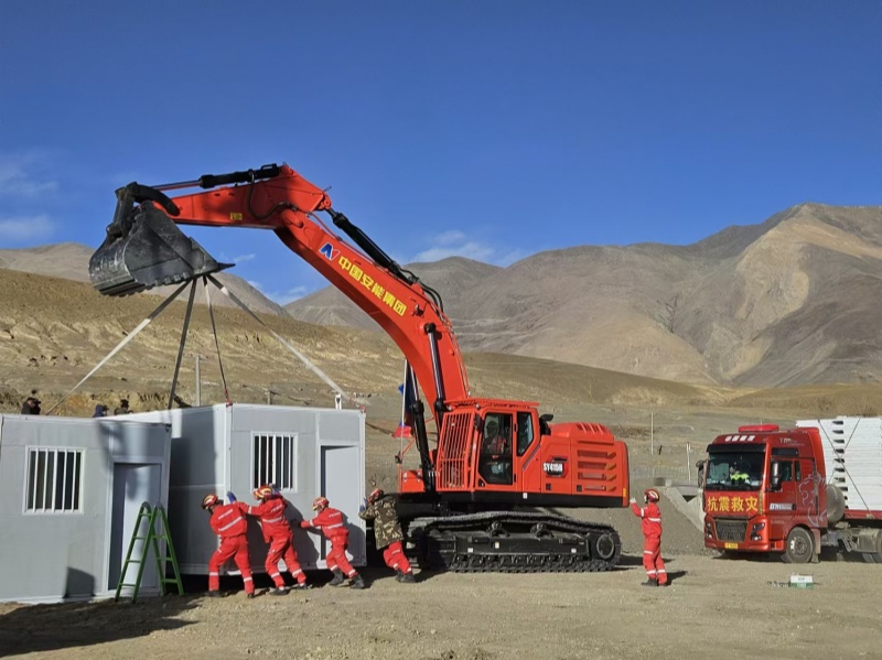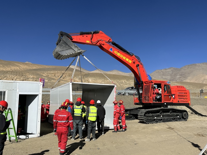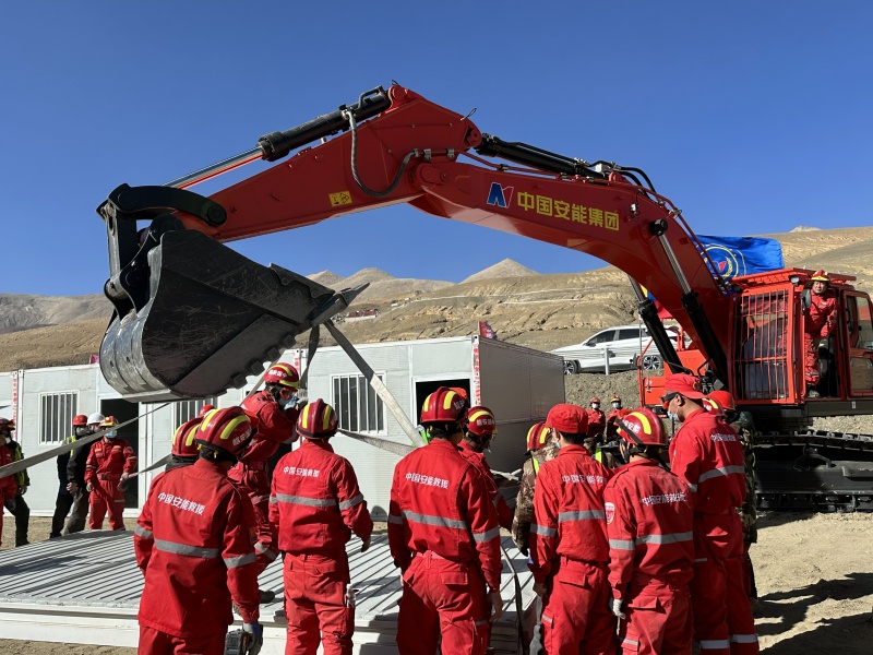 1月9日,在前方指揮部的統(tǒng)一調(diào)度下,繼完成受損房屋搜尋、用電需求保障、安置帳篷搭設(shè)、協(xié)助轉(zhuǎn)運重傷員等任務(wù)后,為了保障受災(zāi)群眾溫暖過冬,中國安能在嘎旦村、玉白村方向組織開展場地平整作業(yè),并進(jìn)行活動板房的搭設(shè)。在嘎旦村投入60余人、10余臺重型救援裝備全力投入板房搭設(shè)工作。過程中,挖掘機、吊機等重型裝備與救援人員共同協(xié)作,搭建工作進(jìn)展迅速。