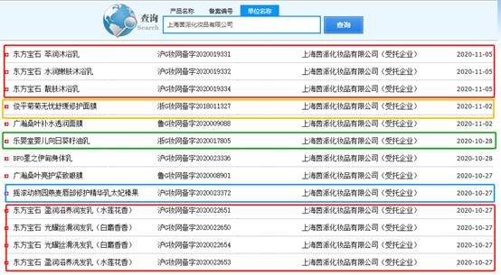 記者查詢國產(chǎn)非特殊用途化妝品備案平臺得知,上海茵派化妝品有限公司是紅地球明星草本精華卸妝水、俊平永久花純露、稚優(yōu)泉嘭潤保濕清清水、樂嬰堂嬰兒山茶油霜等近500款產(chǎn)品(包含已注銷)的生產(chǎn)企業(yè)。