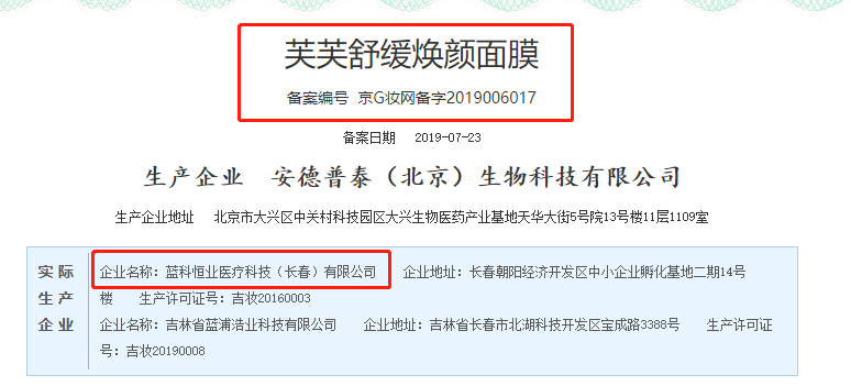 記者了解到,藍(lán)科恒業(yè)醫(yī)療科技(長(zhǎng)春)有限公司是芙芙舒緩煥顏面膜、芙芙深澈潤(rùn)顏面膜、芙芙抑痘凈顏面膜、芙芙清痘復(fù)顏面膜等產(chǎn)品的生產(chǎn)企業(yè)。其中芙芙舒緩煥顏面膜在網(wǎng)購平臺(tái)上芙芙官方旗艦店總銷售量達(dá)54萬。