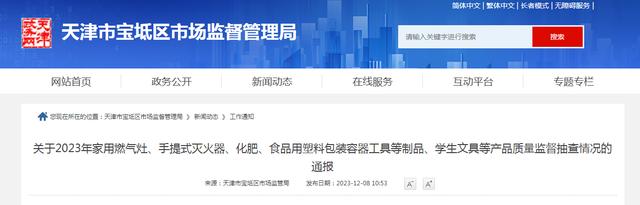 2023年,寶坻區(qū)市場監(jiān)管局開展了家用燃?xì)庠?、手提式滅火器、化肥、食品用塑料包裝容器工具等制品、學(xué)生文具等產(chǎn)品質(zhì)量監(jiān)督抽查。共抽查產(chǎn)品100批次,不合格10批次,不合格發(fā)現(xiàn)率10%。