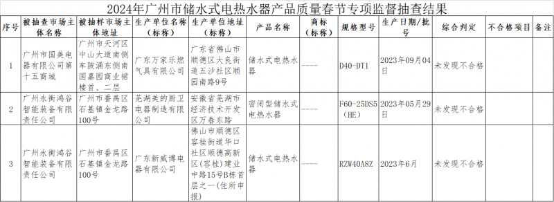近日,廣州市市場監(jiān)督管理局對儲水式電熱水器產品質量進行了專項監(jiān)督抽查,共抽查了3批次樣品,經檢驗,未發(fā)現(xiàn)不合格。