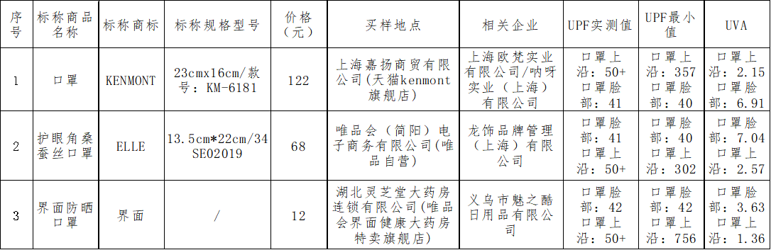 KENMONT、ELLE等3款樣品實(shí)測(cè)UPF值與明示或宣稱(chēng)不符