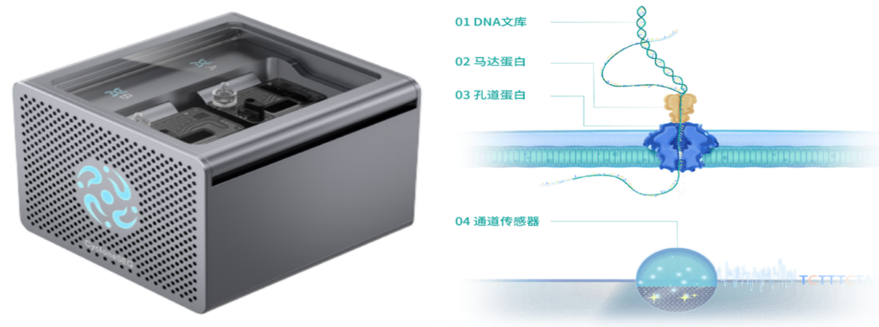 圖為納米孔基因測(cè)序儀(左)及其核心組件示意圖(右) 由市場(chǎng)監(jiān)管總局供圖