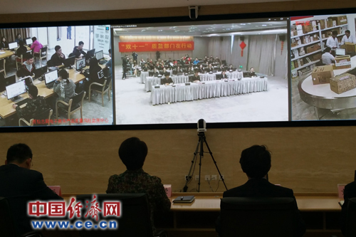 國家質(zhì)檢總局與設(shè)在杭州的質(zhì)檢總局電子商務(wù)產(chǎn)品質(zhì)量風(fēng)險(xiǎn)監(jiān)測中心(杭州)進(jìn)行了視頻連線,全過程監(jiān)管。中國經(jīng)濟(jì)網(wǎng)記者蘇蘭/攝