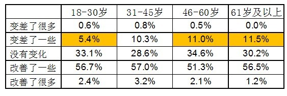 解讀一:過去一年,46-60歲的市民對食品安全狀況的改善評價(jià)較低