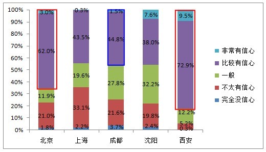 解讀三:未來,西安、北京對食品安全的改善最有信心,上海、成都信心不足。