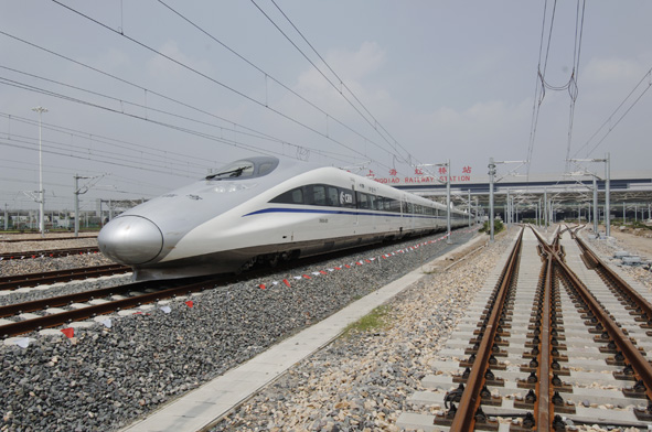 9月28日上午,在滬杭鐵路試運(yùn)行期間,由中國南車研制的CRH380A商用動(dòng)車組創(chuàng)造了416.6公里的世界鐵路最高時(shí)速。