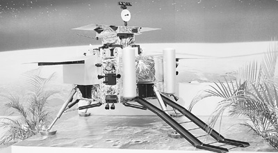 上部小車(chē)為月面巡視器模型,下為月面軟著陸探測(cè)器模型。我國(guó)探月工程二期將研制和發(fā)射月面軟著陸探測(cè)器和巡視器,開(kāi)展月面探測(cè)活動(dòng),實(shí)現(xiàn)落月目標(biāo),也就是嫦娥三號(hào)任務(wù)。